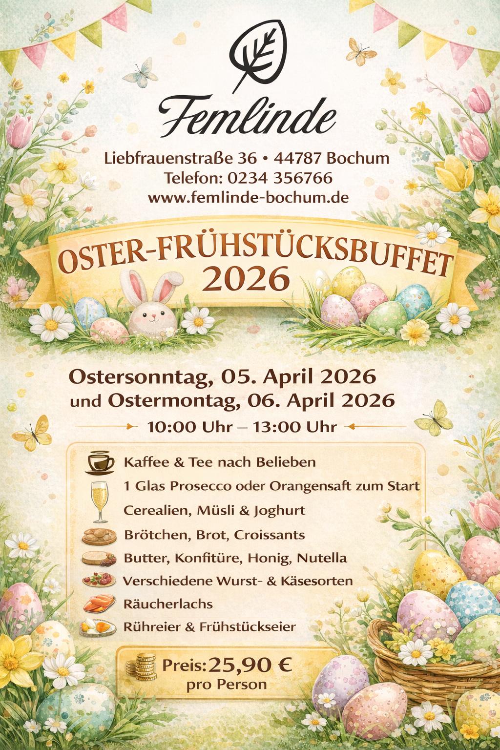 Lust auf ein ausgiebiges Osterfrühstück in der Femlinde mit der ganzen Familie und Freunden?